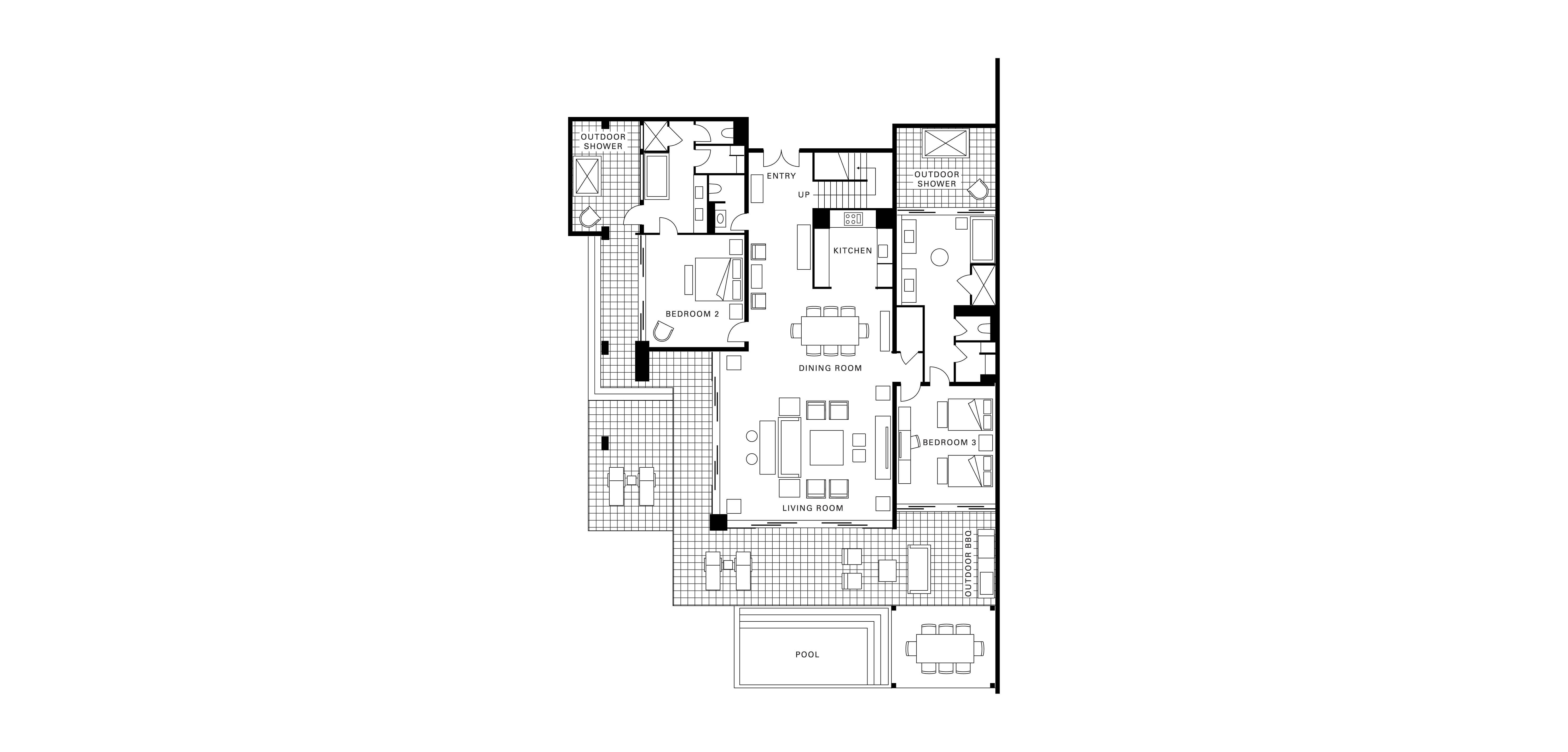 Total of 6,538 sq. ft. (607sm), including 4,423 sq. ft. (411 sm) indoors and 2,115 sq. ft. (196 sm) of furnished outdoor living. Building 39, two-floor townhome