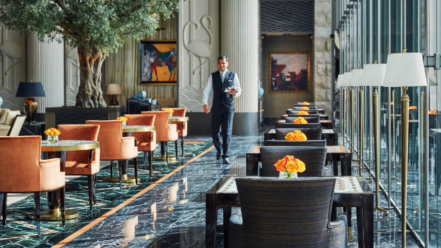 استمتع بالجلوس تحت أشجار الزيتون المُصانة منذ قرنين في ردهة الفندق