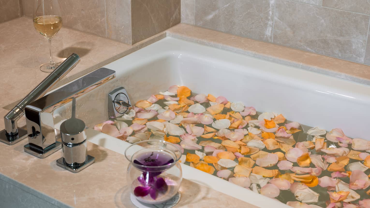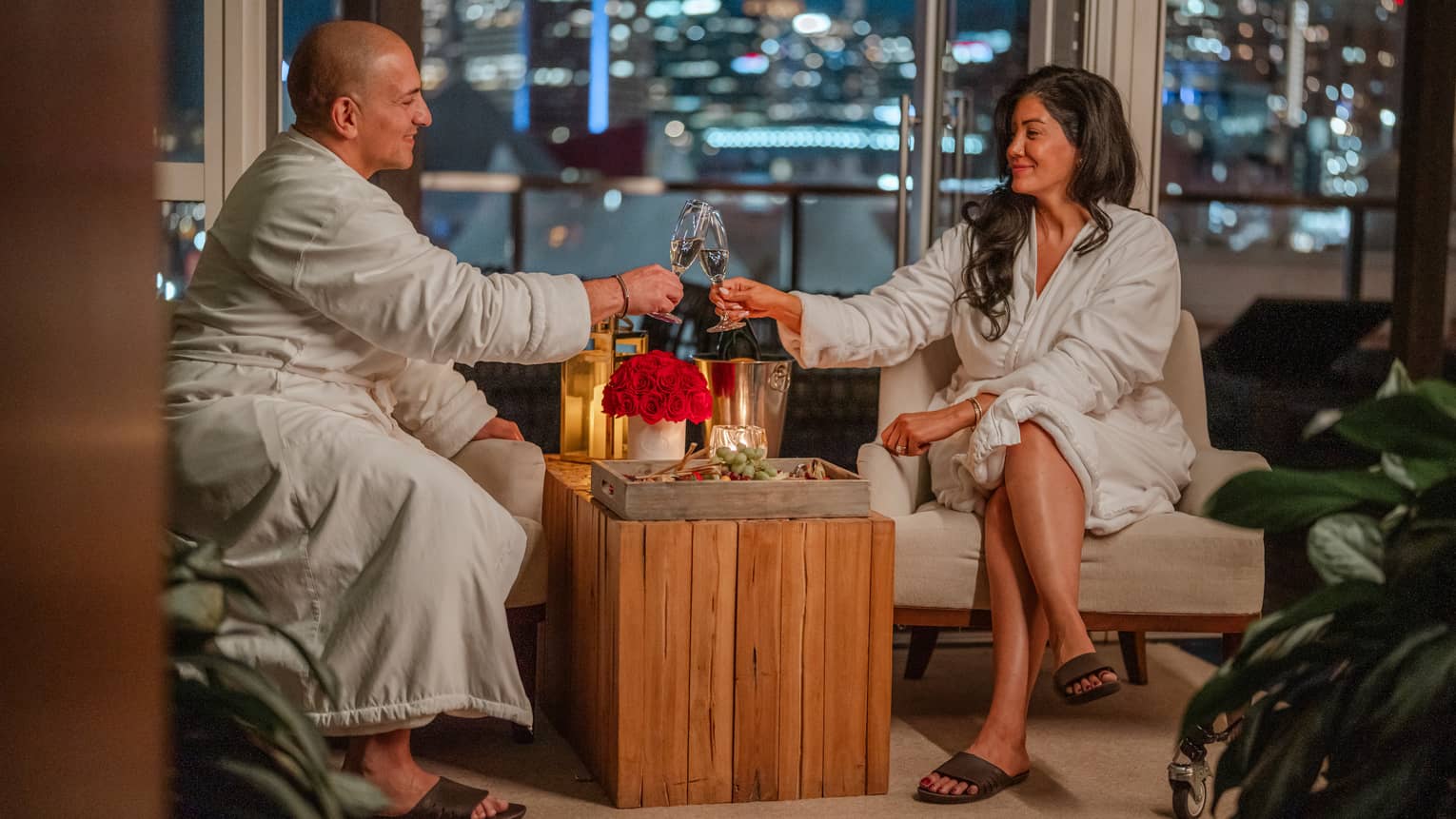 اصنعوا أجواء ليلية لا تُنسى من خلال الاستخدام الحصري للسبا الحائز على العديد من الجوائز. استمتعوا بالمشروبات اللذيذة والمأكولات الخفيفة لِشخصين وتدليك للأزواج والاستجمام على ضوء الشموع، كل هذا ومن ورائكم خلفية المرفأ من جناح كبار الشخصيات الخاص بالأزواج. تذكروا مُناسبتكم الخاصة مع الترتيب الخاص للورود من Venus ET Fleur Eternity Rose وردائيْ استحمام مُميزين من فورسيزونز يُمكنكُما أخذهما معكم إلى البيت.