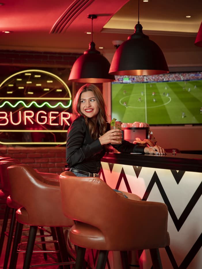 استمتعوا بتناول أشهى المأكولات وألذ المشروبات مع الأهل والأصدقاء في "بار رياضي" ومطعم برجر عصري في القاهرة. تذوقوا البرجر الفاخر المشوي على الفحم مع لمسة عالمية، إلى جانب بيرة باردة أو ميلك شيك، أثناء الاستمتاع بمشاهدة مباراتكم المفضلة على شاشاتنا الكبيرة.