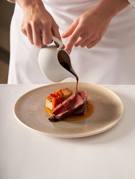 تأمّلوا روعة أبو الهول المُضيء وأهرامات الجيزة تحت سماء صافية مُرصّعة بالنجوم. ثم استرخوا داخل خيمتكم الخاصة، حيث يُضفي منظر الأهرامات الغامضة وأنغام الموسيقى المباشرة أجواء ساحرة على عشاء من اختياركم.2 / 3اكتشفوا Masterdish المحلي