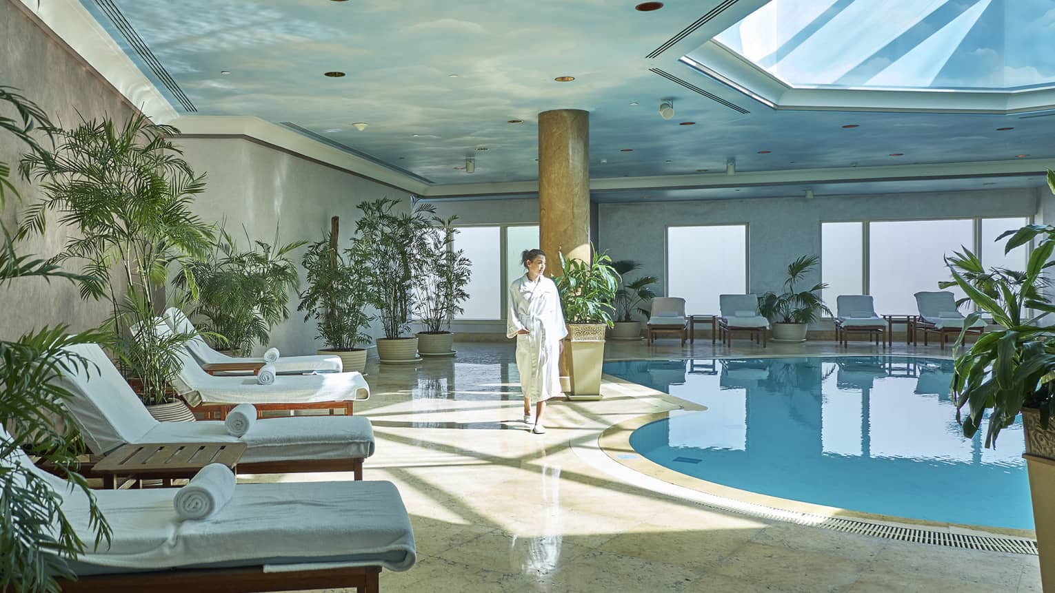 حوض السباحة الداخلي الساحريقع حوض السباحة الداخلي المُدفأ في سبا الصحة والعافية وهو مُتاح للضيوف الذين تتجاوز أعمارهم 16 عامًا.