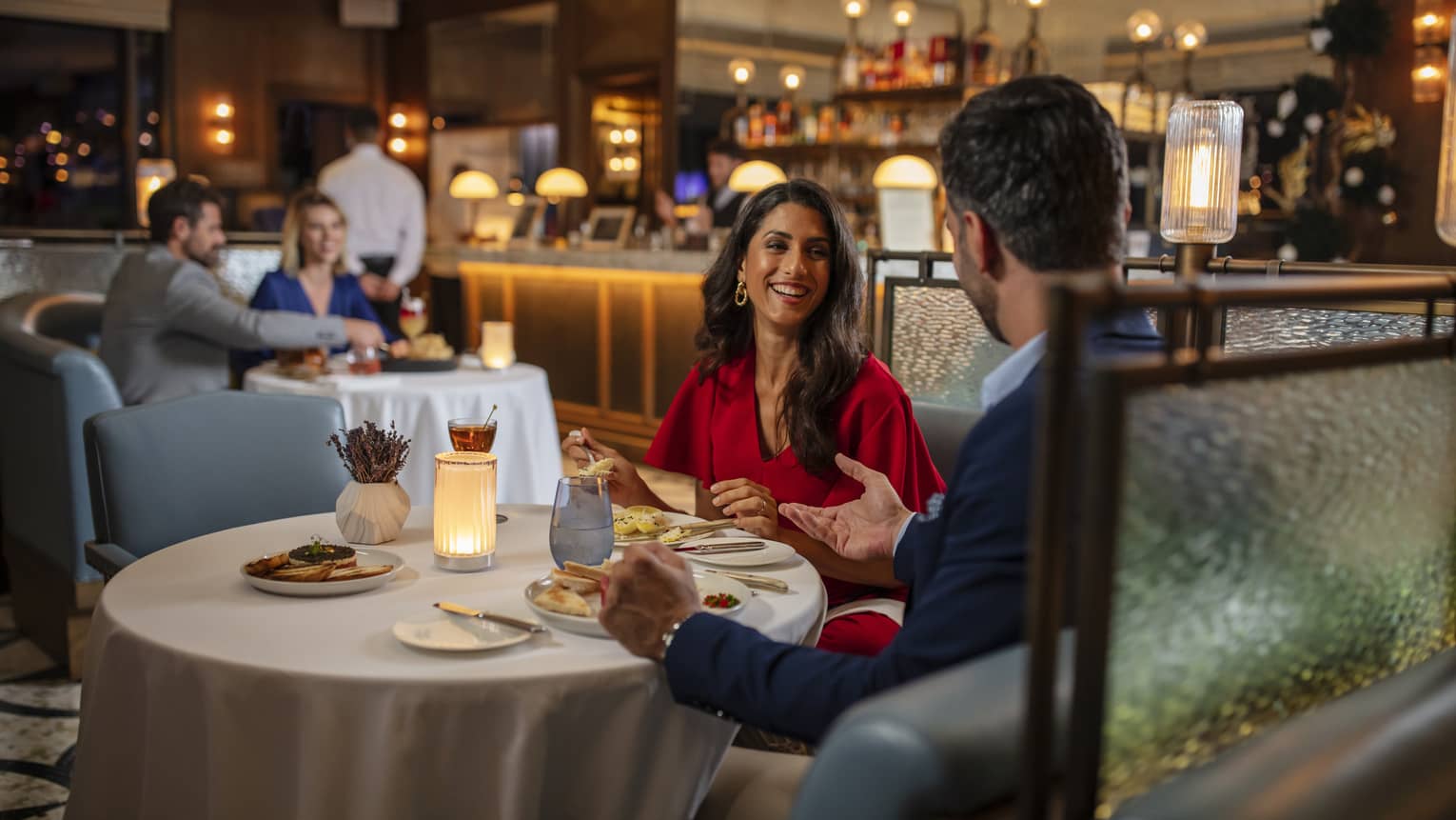 ستحظون بإطلالة على المدينة وغروب الشمس الذهبي أثناء تناول الطعام بجانب المسبح فوق السطح - مع قائمة طعام من المقبلات من الشرق الأوسط والسلطات المحببة إلى قلوبكم والكوكتيلات التي أُعدّت بمنتهى الإبداع والإتقان.