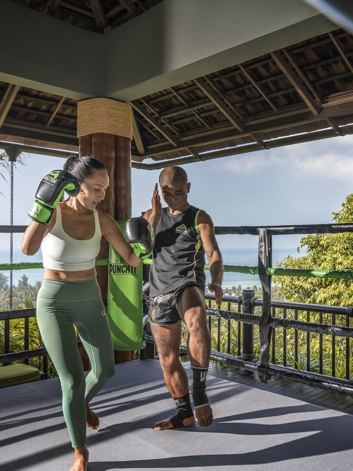 ابدؤوا صباحكم بتمارين تحت إشراف مُدرب على الشاطئ أو في صالة الألعاب الرياضية. احبسوا أنفاسكم عند حضوركم حصة مليئة بالحركة في فن الملاكمة التايلندية القديمة المعروف باسم "مواي تاي". استمتعوا بغداء صحي بين الأنشطة المُتنوّعة واختموا يومكم بالشكل المثالي مع جلسة تدليك مُريحة بالماغنيسيوم.