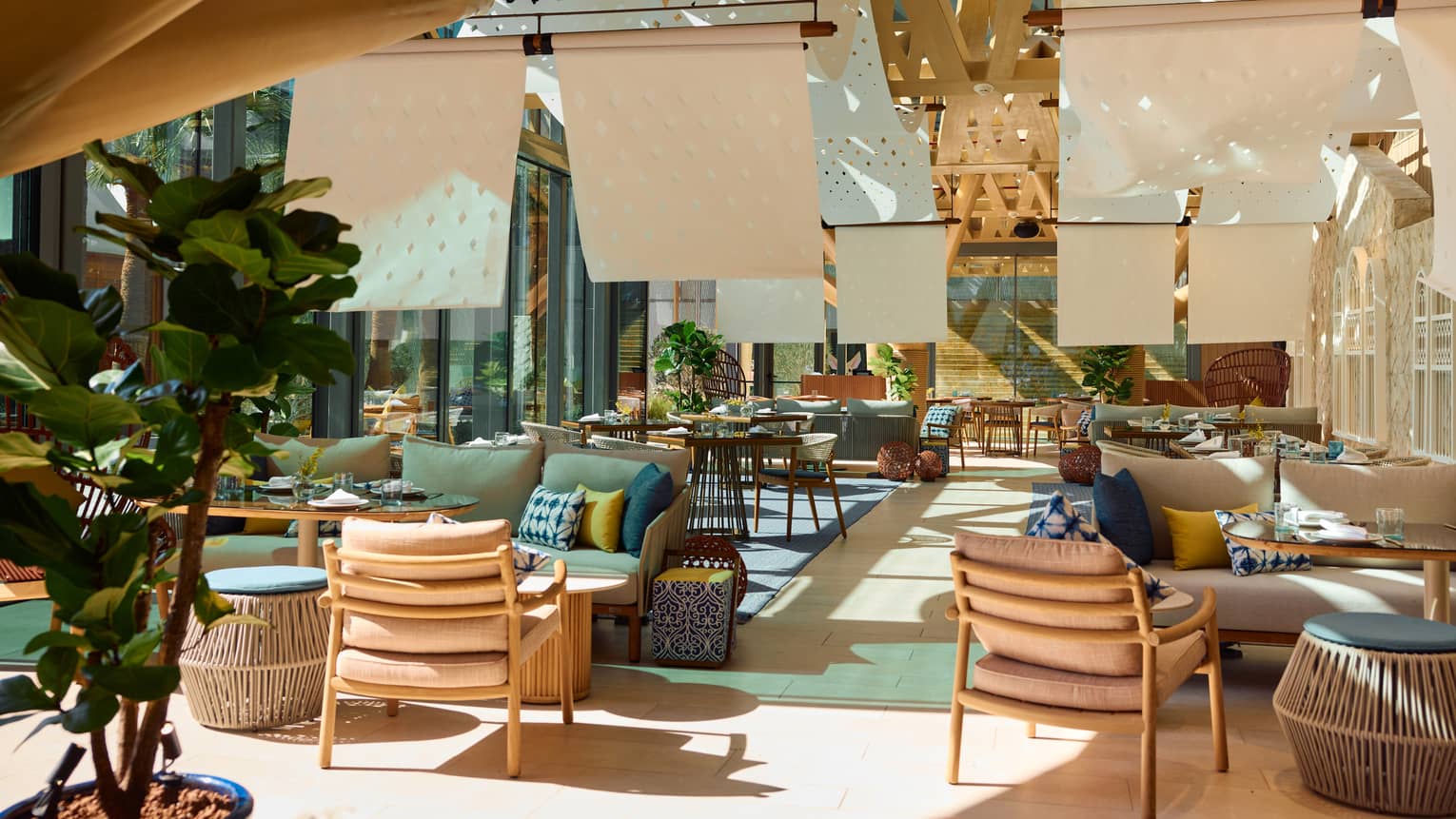 استمتعوا بالسباحة في حوض السباحة إنفينينتي مُمهد الحواف، أو اقضوا اليوم في إحدى الكابانات الخمس المُكيفة.