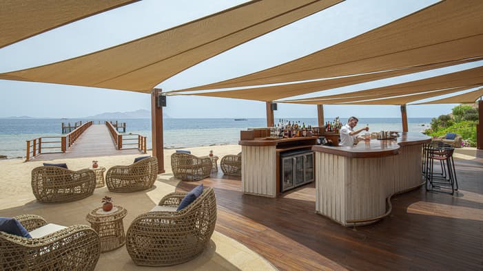 حين يَجمع الموقع بين الظلال وضوء النار والبحر، فإنه يُصبح مثاليًا لإقامة وليمة على الطريقة البدوية على شاطئ البحر الأحمر. استمتعوا بتذوّق المأكولات المصرية الأصيلة أثناء التدلّل بالوسائل الترفيهية المسائية مثل الموسيقى المُباشرة والنار والرقص الشرقي وركوب الجمال على الشاطئ. هذا العرض مُتوفر من يونيو إلى نوفمبر.4 / 5