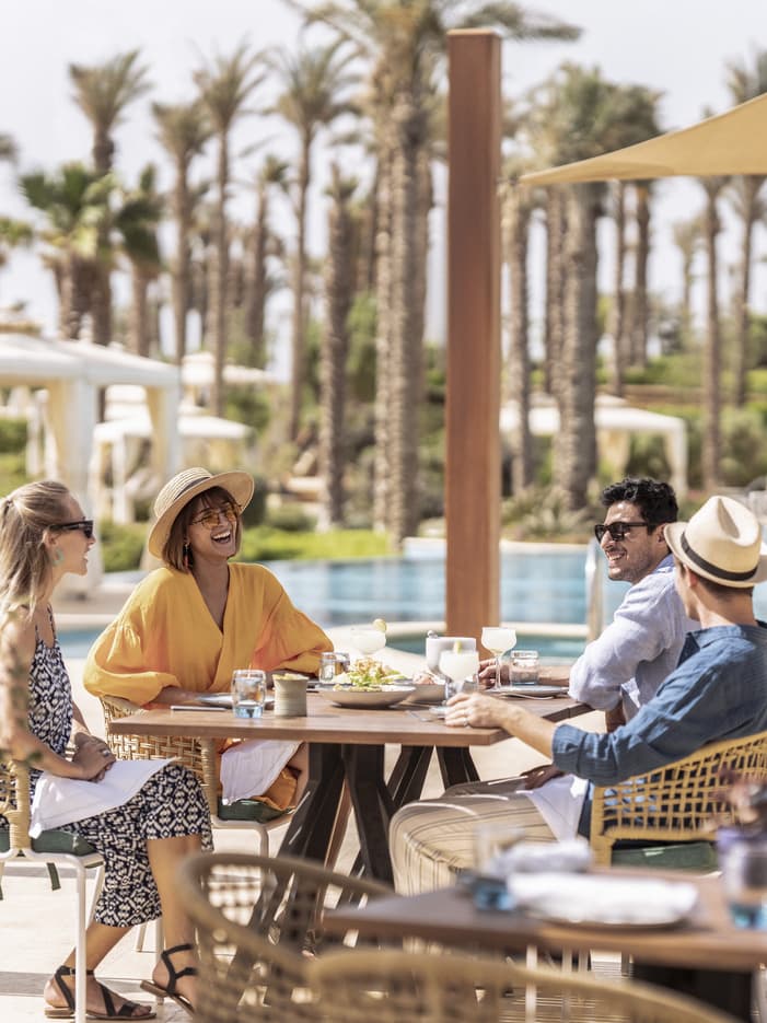 استمتعوا بقضاء أجمل الأوقات على الغداء بجوار حوض سباحة الواحة المُحاط بأشجار النخيل. تشتمل المأكولات الشهيرة على المأكولات البحرية الطازجة والشطائر والباستا، بالإضافة إلى الآيس كريم والقهوة المُثلجة والكوكتيلات المُنعشة.