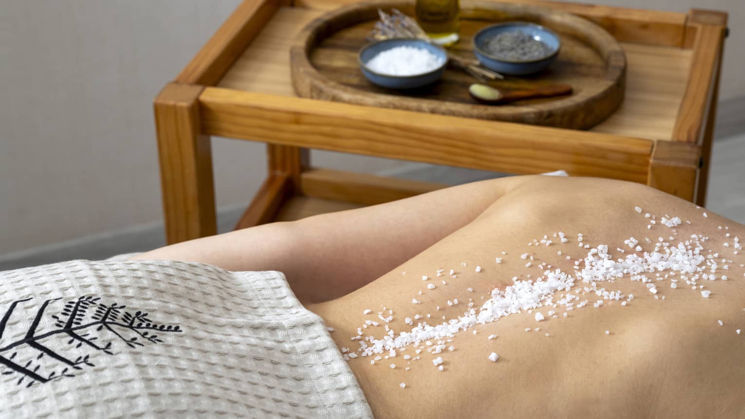 Salt crystals, rich in therapeutic minerals, dried lavender flowers and virgin olive oil detoxify, renew and nourish the skin for a velvety and radiant feel.