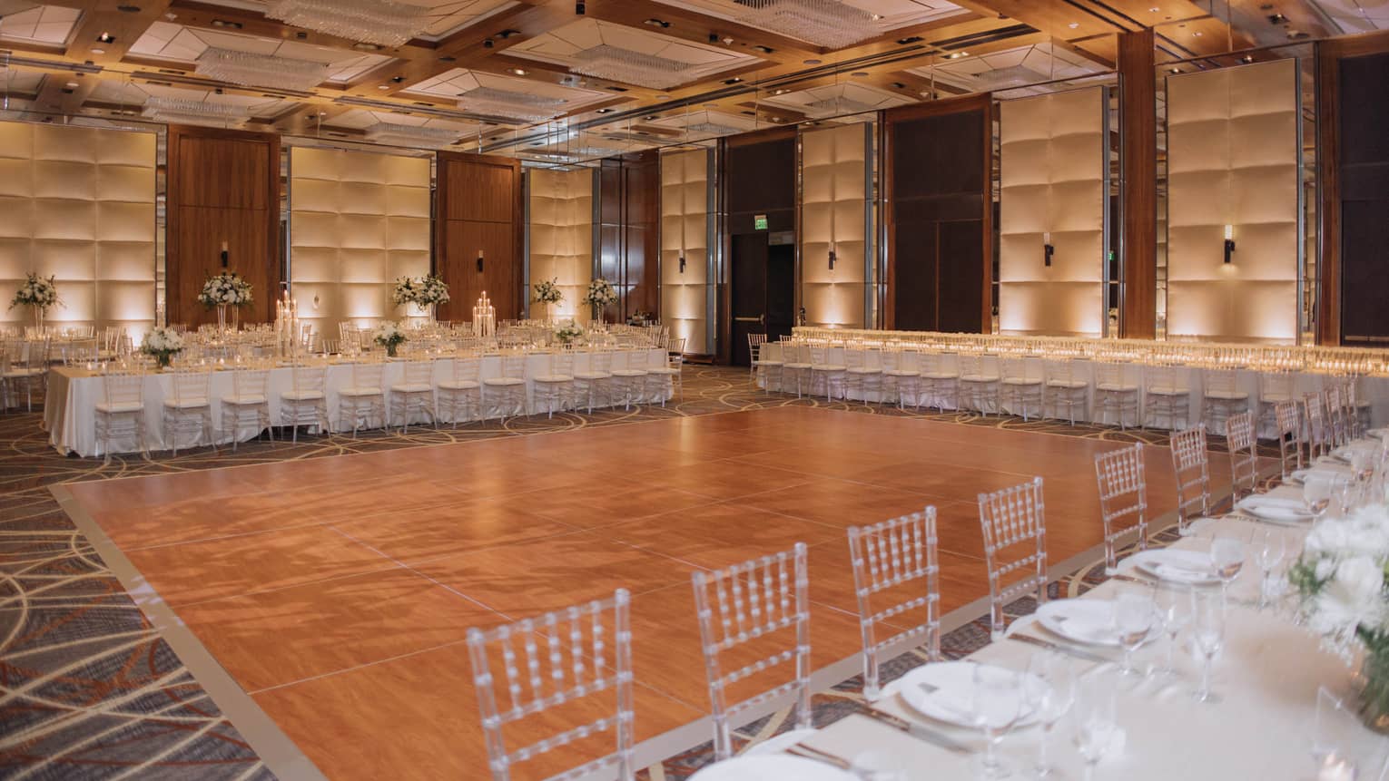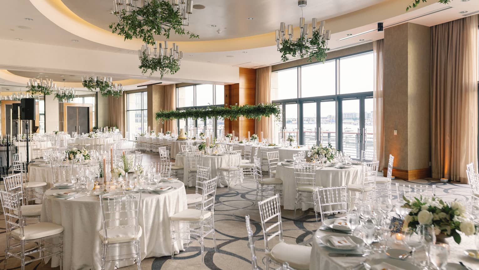 Our signature wedding venue, the Grand Ballroom offers 5,300 square feet of elegance, with high ceilings, sparkling chandeliers and the ability to host everything from an intimate dinner to a grand celebration for 550 guests. Customizable layouts, a dedicated pre-function area with floor-to-ceiling Inner Harbor views and catering by our award-winning culinary team make this Baltimore’s premier hotel ballroom for large weddings.