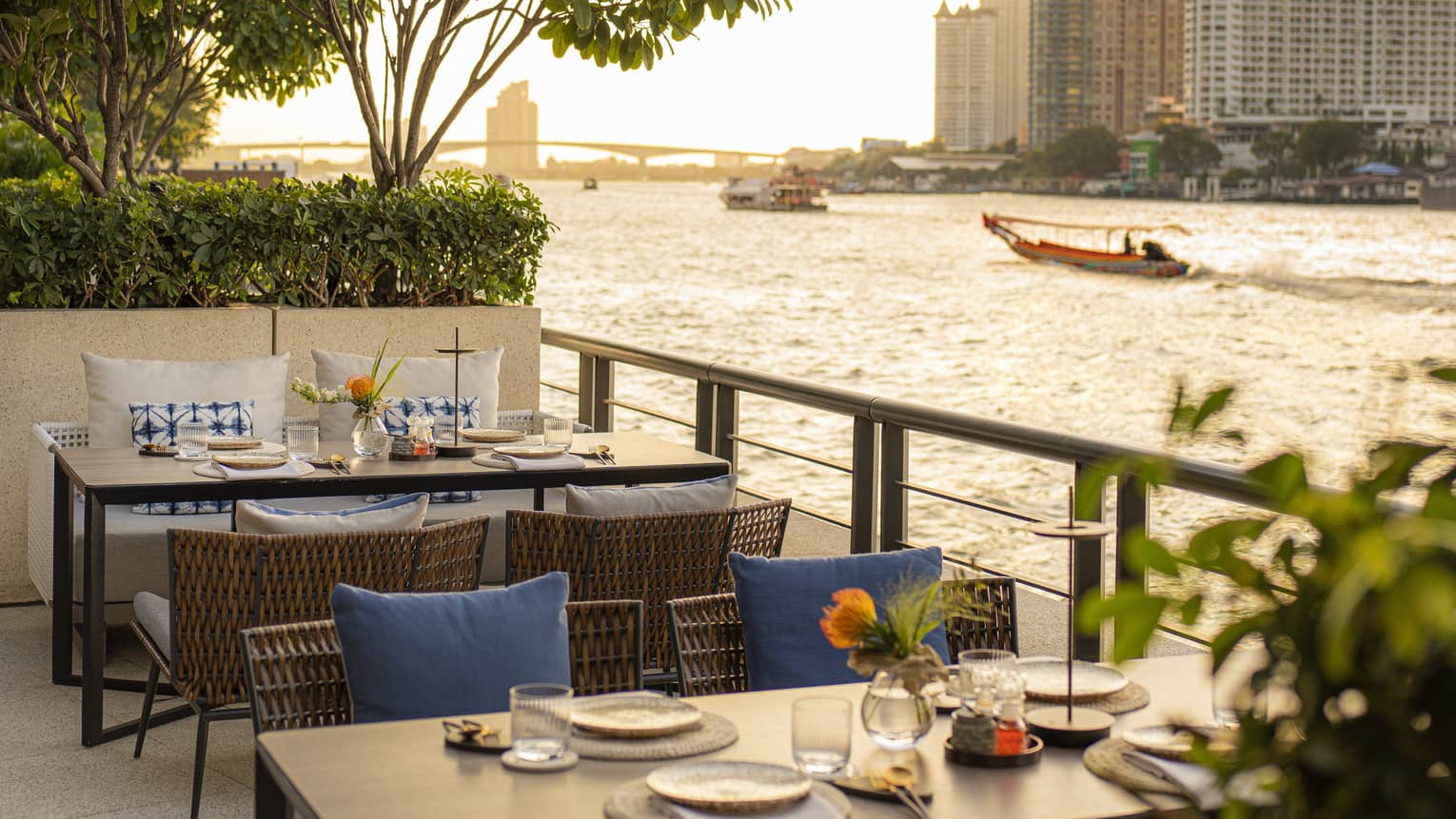 At Chao Phraya Terrace, Chef de Cuisine Jessada Khruapunt uses locally sourced produce and traditional Thai grilling techniques to create vibrant dishes that reimagine and celebrate the essence of Thai cuisine. Enjoy sunset cocktails and flavourful bites in a relaxed riverside atmosphere as you take in evening views of the Chao Phraya River.