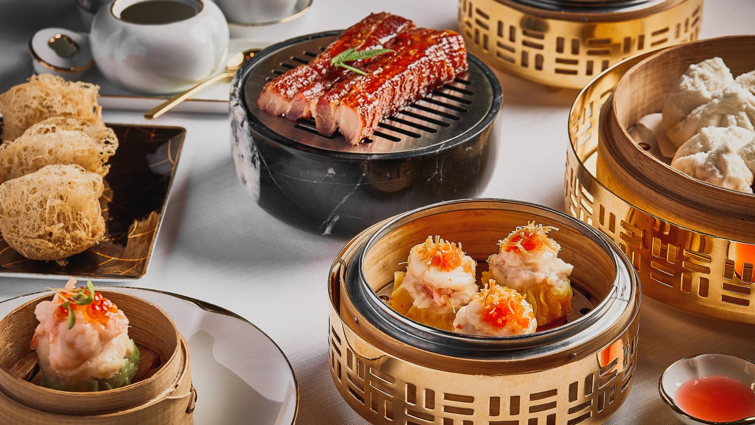 Enjoy an à la carte selection of handcrafted dim sum and other authentic Cantonese dishes. Private and semi-private dining rooms available with a minimum charge. Wine pairing options also available.