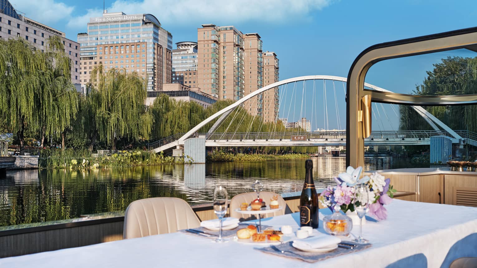 Winding through the city like a ribbon, the Liangma River connects the charm of ancient traditions with modern urban rhythm. Board a luxury mid-sized yacht to embark on an adventure atop urban waters.