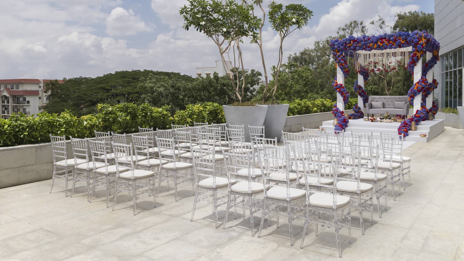 A large outdoor space, the Terrace features state-of-the-art live counters for cooking demonstrations and serving, as well as such aesthetic features as a waterfall and pool view.