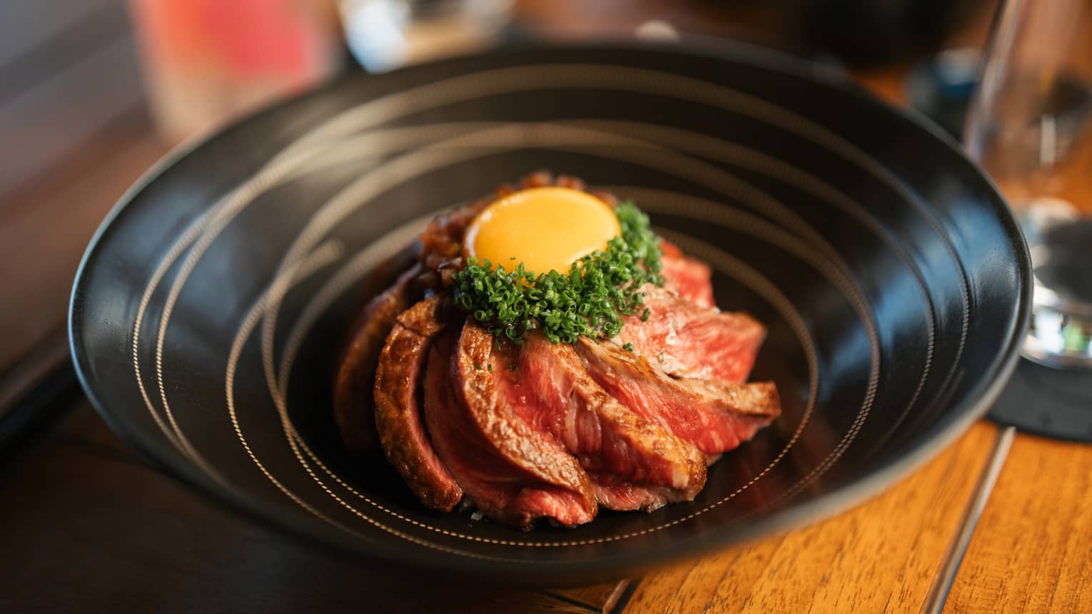 Wagyu DonburiWagyu Beef, Caramelized Onion, Perfect Egg, Garlic, Ginger, Jasmine Rice