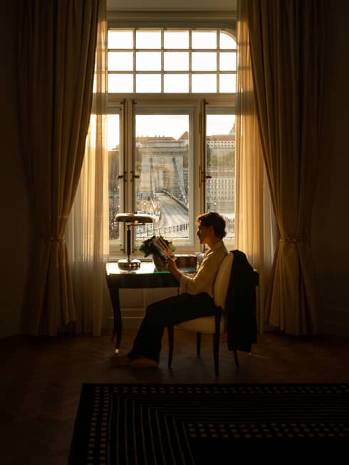 Airy and inviting, our Chain Bridge Suite blends the ease of home with the timeless elegance of the Gresham Palace. Painterly views of the Danube and Castle Hill fill the oversized windows, while generous living areas offer space for relaxation, family time or quiet work.