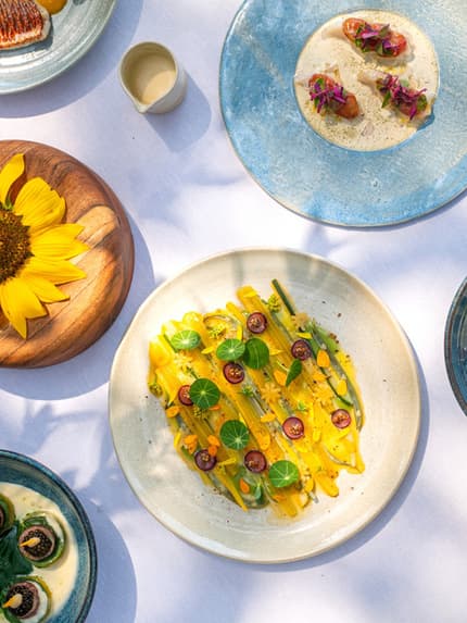 Experience an exclusive gastronomic journey born of a collaboration between Michelin-distinguished Chef Yoric Tièche, Wine Director Alessandro Nigro Imperiale and Krug. The private table in the intimacy of our gardens offers five courses crafted around seasonal ingredients, paired with the finest cuvées from Krug: appetizer bites and Krug Grande Cuvée, cold starter and Krug Vintage 2011, hot starter and Krug Vintage 2000, main course and Krug Collection 1995, and dessert and Krug Rosé. Up to five guests. Call +33 (0)4 93 76 53 65 or email restaurant.capferrat@fourseasons.com to reserve.