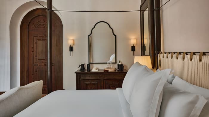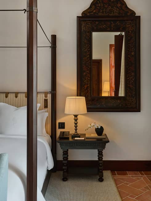 The design vision of Four Seasons Hotel and Residences Cartagena was developed by a carefully selected group of experts, ensuring each element contributes to the project’s distinct identity. The timeless interiors were shaped by internationally renowned designer François Catroux. The look seamlessly merges Spanish Colonial charm with avant-garde attitude, creating a one-of-a-kind contemporary style. With warm woods and eclectic elegance, the atmosphere is distinctly residential, feeling like a home away from home. Many of the individual pieces – from rugs to headboards and stone consoles – were created by Poli Mallarino, a pioneer in the development of industrial design in Colombia. The artwork and frames are by Colombian artist Miguel Cárdenas. Each detail of our Cartagena hotel rooms and suites is an authentic tribute to the country’s heritage and craftsmanship.