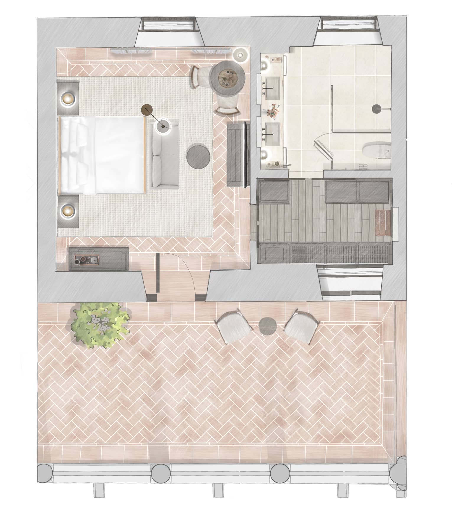 Experience our largest Colonial-style guest room, with a soaring ceiling and more natural light. Dark wood furnishings blend Cartagena tradition with chic sophistication. The artwork and frames in each guest room are by Colombian artist Miguel Cárdenas.