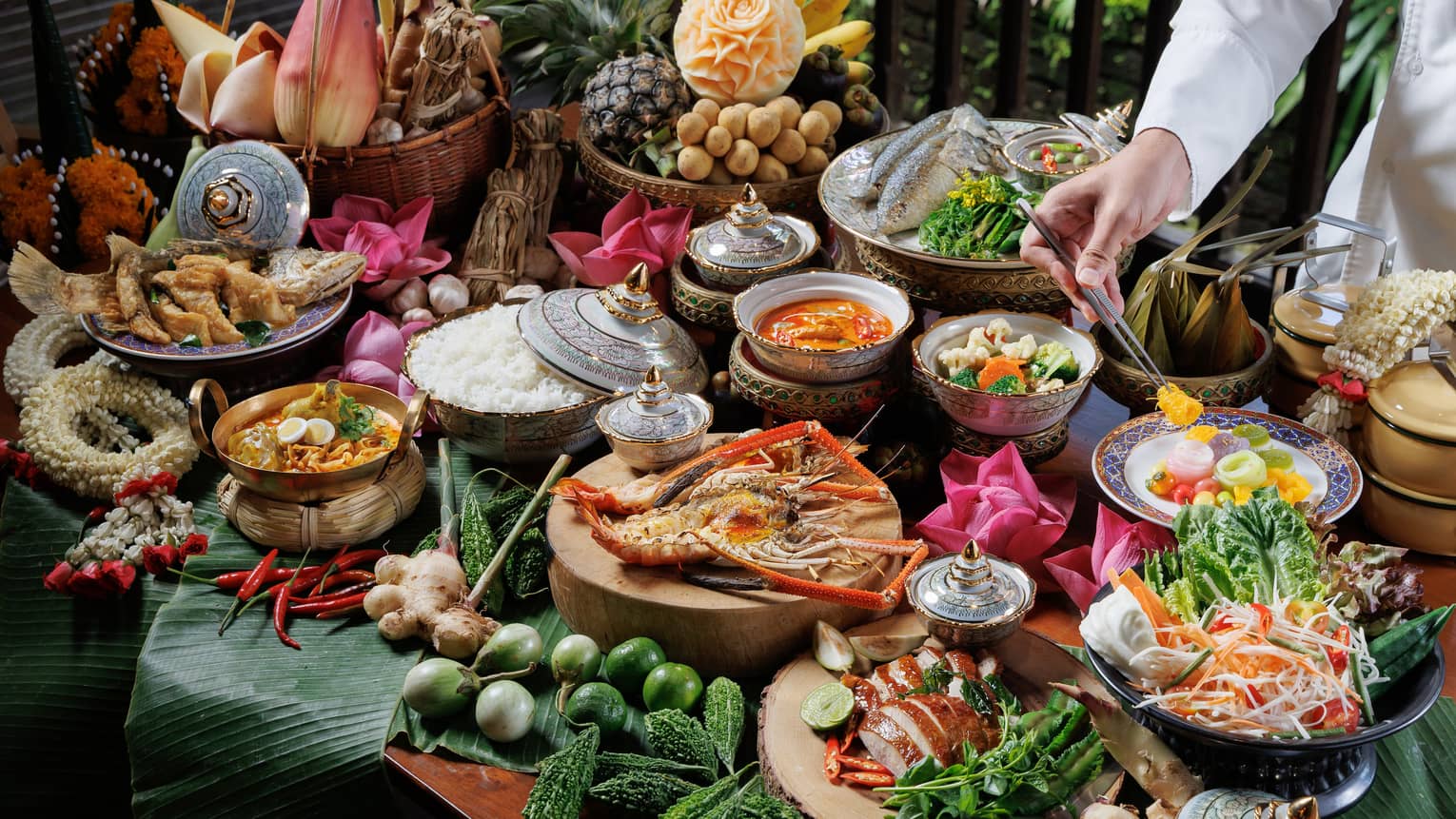 Discover the culinary treasures of Thailand with specialties from across the country, including a traditional khao chae station. Live entertainment by Thai performers and traditional artisans showcasing their crafts adds a local touch to this Thai New Year celebration.