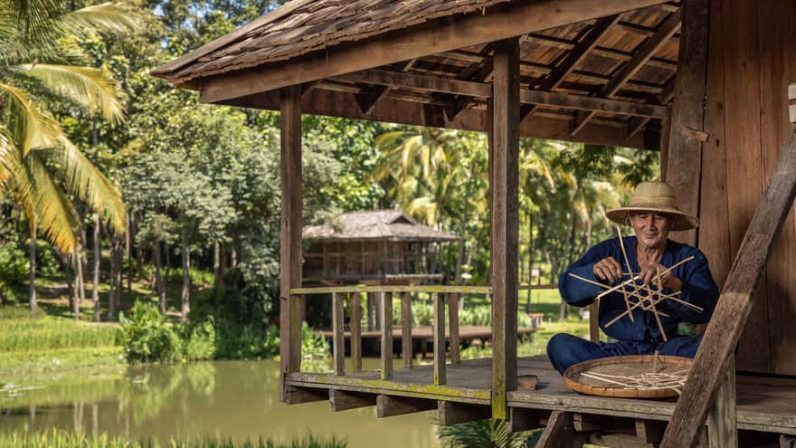 Chaan BaanDiscover time-honoured tools and techniques used in rice cultivation, learn to plant shoots first-hand from our experienced farmers, spin the potter’s wheel or create beautiful art on fabric with natural dyes. Walk through our carefully nurtured herb and vegetable garden, and help our friendly water buffalo with their ritualistic bath.