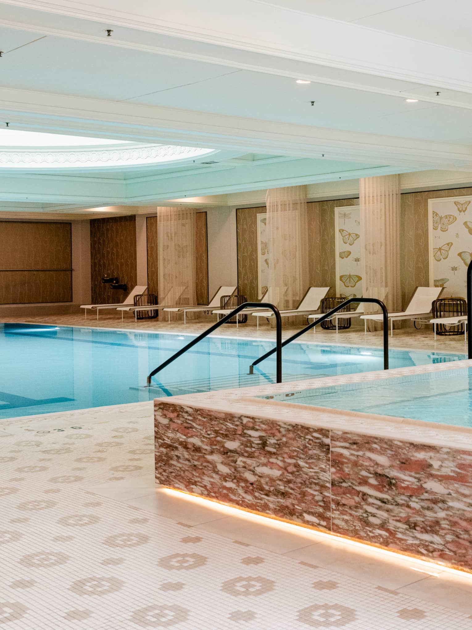 Escape to the 44-foot (13.4-metre) long infinity-edge indoor pool and enjoy swimming laps or simply floating in tranquillity. Comfortable lounge chairs invite you to lie back and savour the year-round warmth while taking in the city views below.