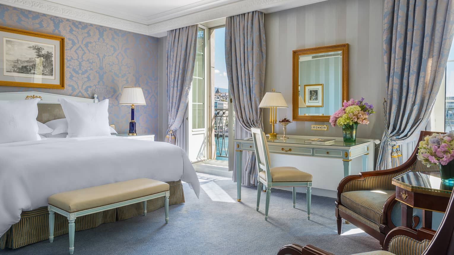 يتميّز جناحنا الملكي بأناقة وفخامة فيرساي، كما يتميّز كل ركن فيه بنسخ فرنسية مُذهلة ونوافذ طويلة مُطلة على بحيرة جنيف.