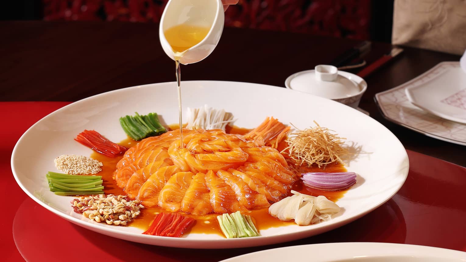 Welcome Lunar New Year with an elegant feast that sets the tone for celebration and prosperity. From Saai Yue Heen’s signature six-appetizer platter and salmon lo hei to double-boiled soup with matsutake, each course unfolds with meaning. Highlights include abalone in a treasure pot, traditional jujube wood–roasted Peking duck and refined seafood and wagyu selections, concluding with rice, handmade dumplings and classic festive desserts.