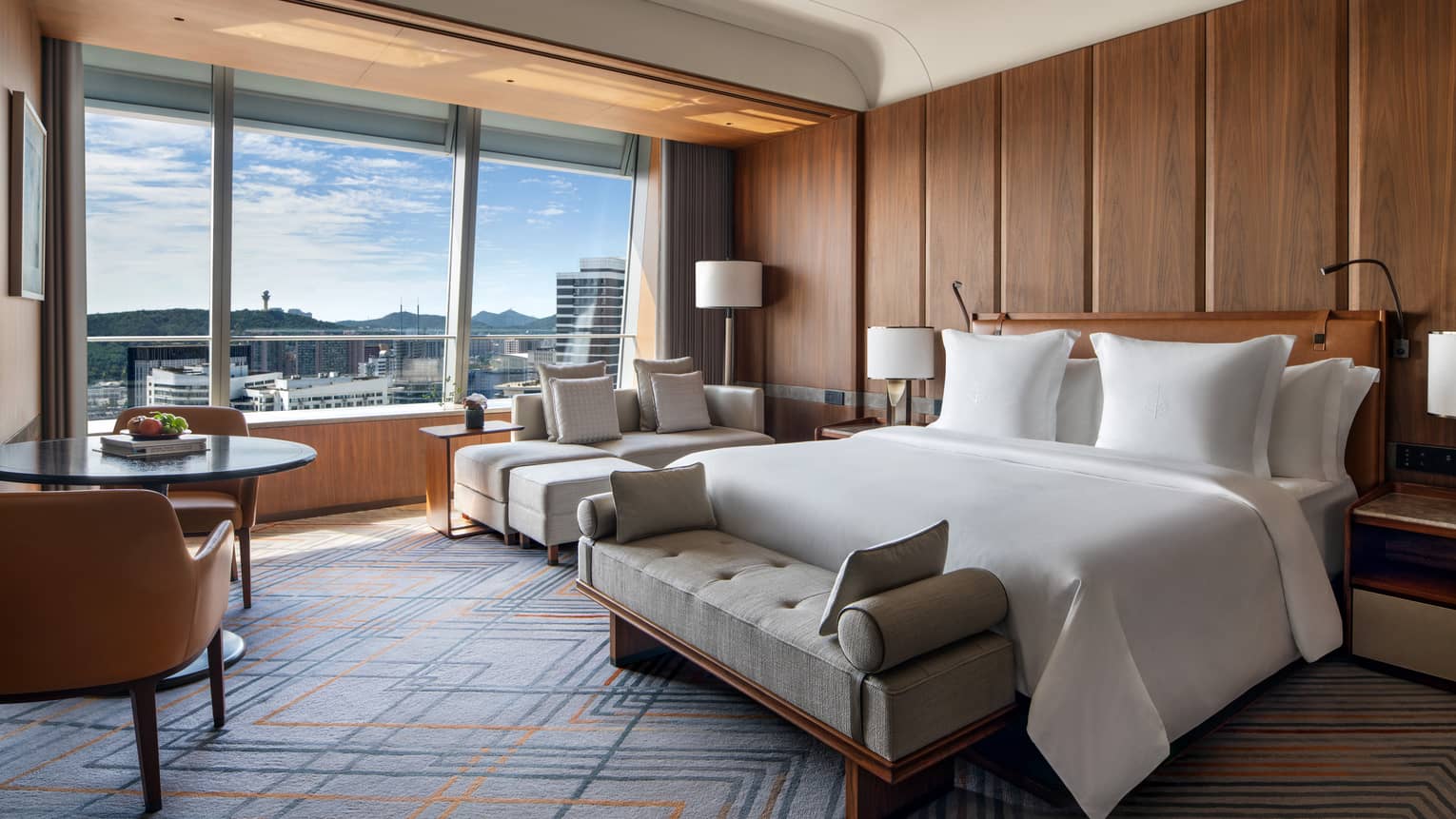 Enjoy refined comfort in our Superior City-View Room, where contemporary design meets sweeping views of Dalian’s skyline. Floor-to-ceiling windows fill the space with natural light, creating a bright and welcoming retreat for relaxation and effortless stays.
