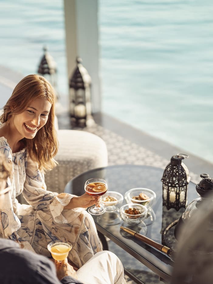 - Begeben Sie sich auf eine Zeitreise und lassen Sie sich an Bord eines traditionellen, aus Holz gebautem Dhoni mit arabischen Köstlichkeiten aus unserem Restaurant Al Barakat verwöhnen. So einfach und doch spektakulär kann ein Dinner auf dem Ozean sein.