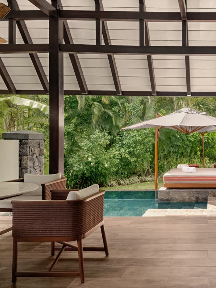 Genießen Sie das Gefühl der Abgeschiedenheit in dieser schicken Villa mit Innen- und Außenwohnbereich, die von üppigen tropischen Gärten umgeben ist. Springen Sie noch kurz in Ihr privates Tauchbecken, bevor Sie sich für eine erholsame Nacht zurückziehen.