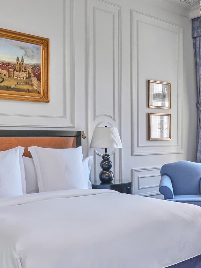 Mit ihren hohen Decken, traditionellen tschechischen Wandpaneelen und Kronleuchtern aus böhmischem Kristall laden unsere größten Gästezimmer zu einer stilvollen Reise in die Vergangenheit ein.