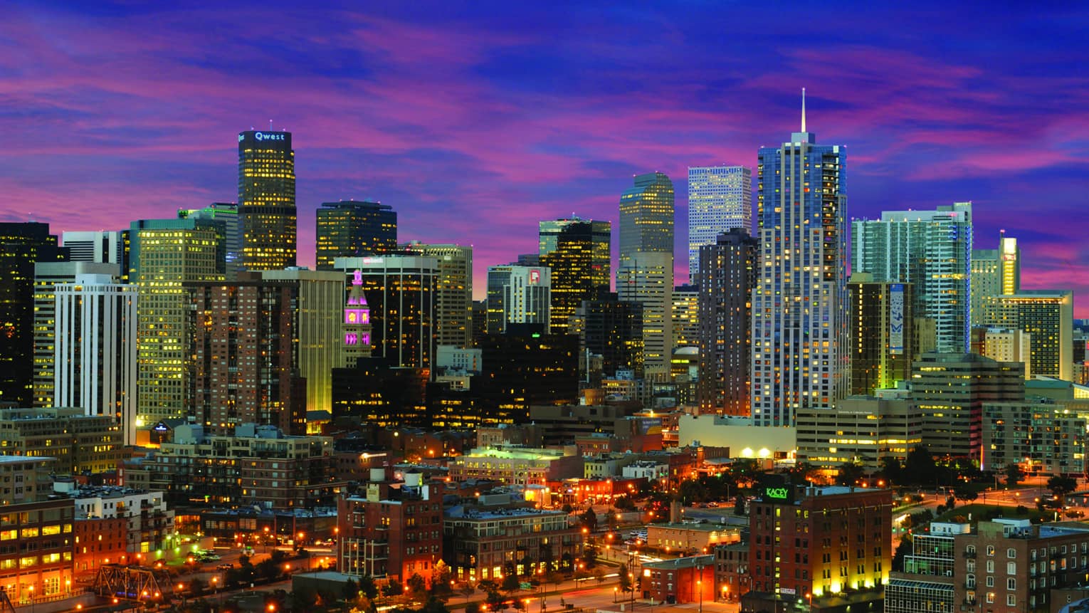 The Denver skyline glistens in the evening light