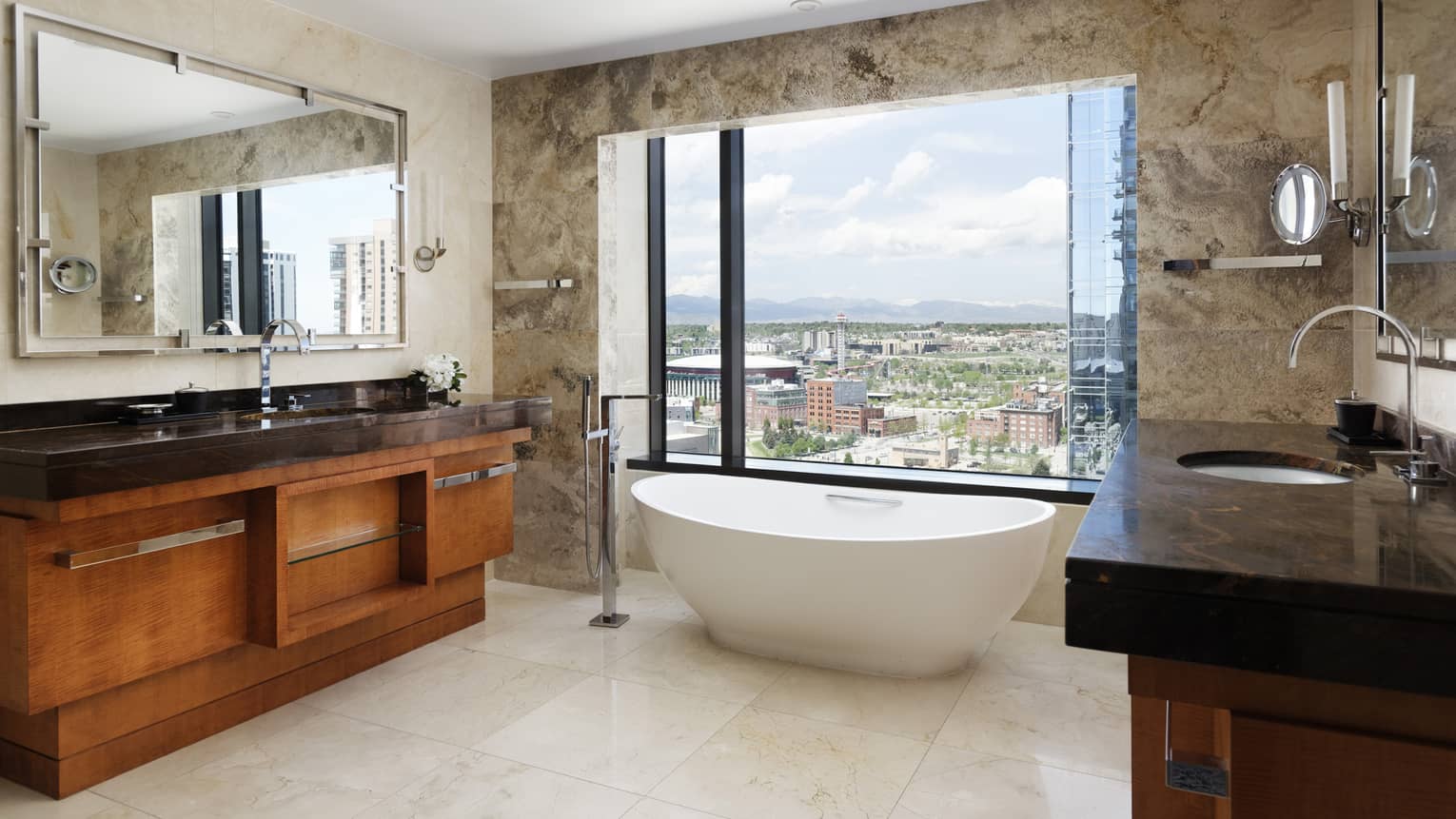 Premier Corner RoomWraparound windows let the light shine in throughout these corner rooms, letting you enjoy views of the mountains or downtown Denver from both your king-size bed and the bathroom’s deep soaking tub.