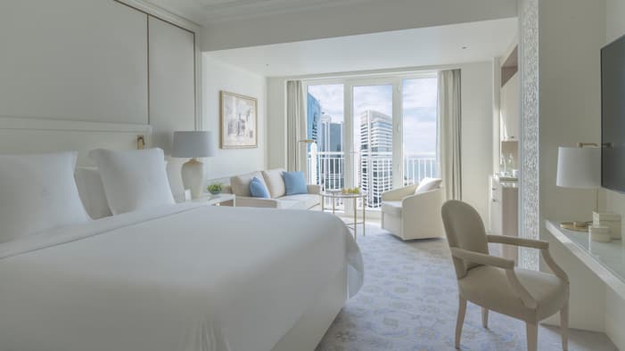 With dramatic views of the Doha skyline, these spacious guest rooms add to your relaxation with a comfortable sitting area. Most also include a step-out balcony.