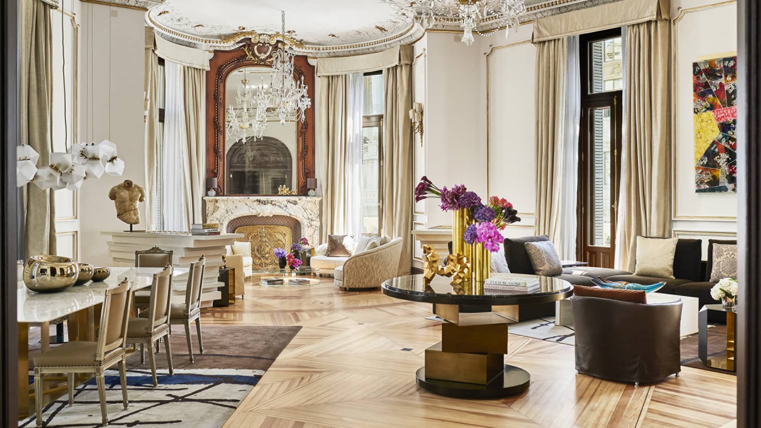 Salón Canalejas BallroomEl Salón Canalejas Ballroom de Four Seasons Madrid está adornado con impresionantes obras de arte contemporáneo, que añaden un toque moderno y artístico a su elegante ambiente. Este detalle único realza el atractivo del salón para eventos distinguidos.