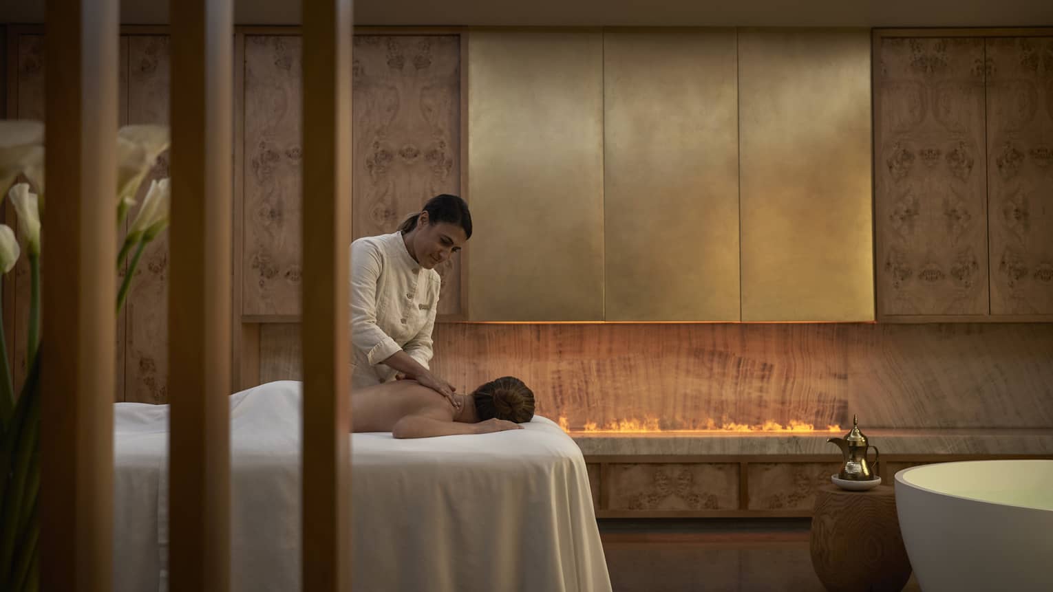 Cabina Doble JazmínLas parejas pueden disfrutar juntas de tratamientos rejuvenecedores, envueltas en una atmósfera de elegante serenidad.