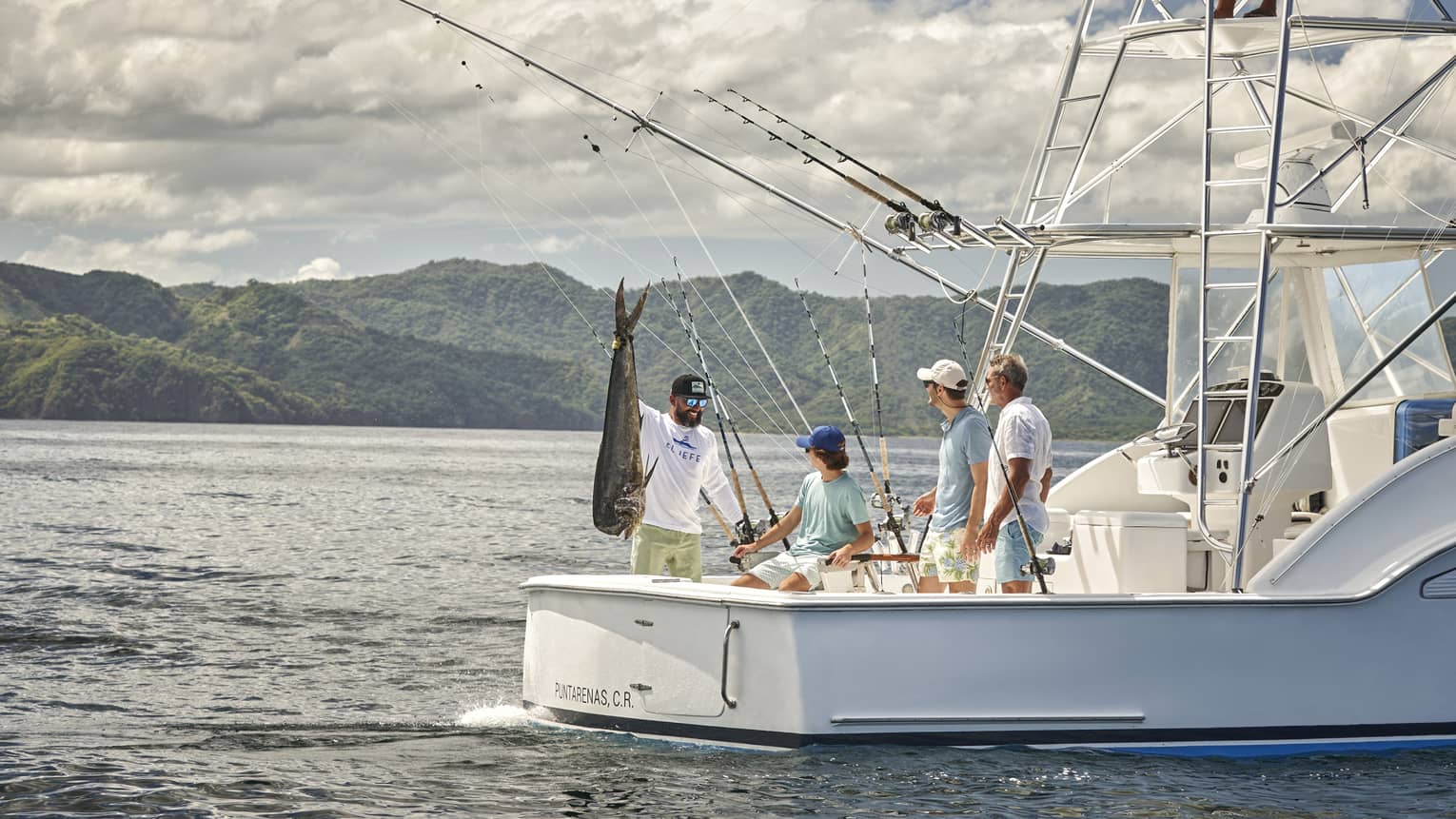 La buena pescaEl mar cerúleo de esta localidad goza de fama como el "Parque Jurásico" de la pesca deportiva. Lo equiparemos con todo lo necesario para que anote estas aguas, desbordantes de marlín y pez vela, en su lista de sitios favoritos para pescar y celebrar. Lleve la pesca del día a casa y nuestro chef se la preparará de manera especial para usted y los suyos.