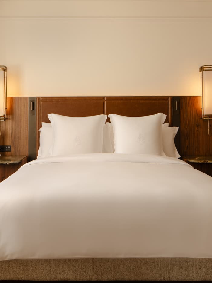 Esta Suite Ejecutiva con vista a la calle Burdeos ofrece una experiencia íntima que combina una sala de estar independiente —ideal para trabajar o relajarse— con una recámara serena, envuelta en texturas naturales, maderas cálidas y detalles artesanales que evocan la creatividad local. La suave luz de la calle Burdeos acompaña las mañanas en la suite, invitando a disfrutar de un café en la sala o a saborear una copa del bar privado al caer la tarde.