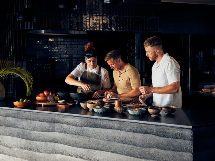 Sienta la energía de esta cocina al aire libre ubicada en el corazón de Naviva. Disfrute de mariscos frescos y los mejores productos de temporada cocinados a fuego abierto.