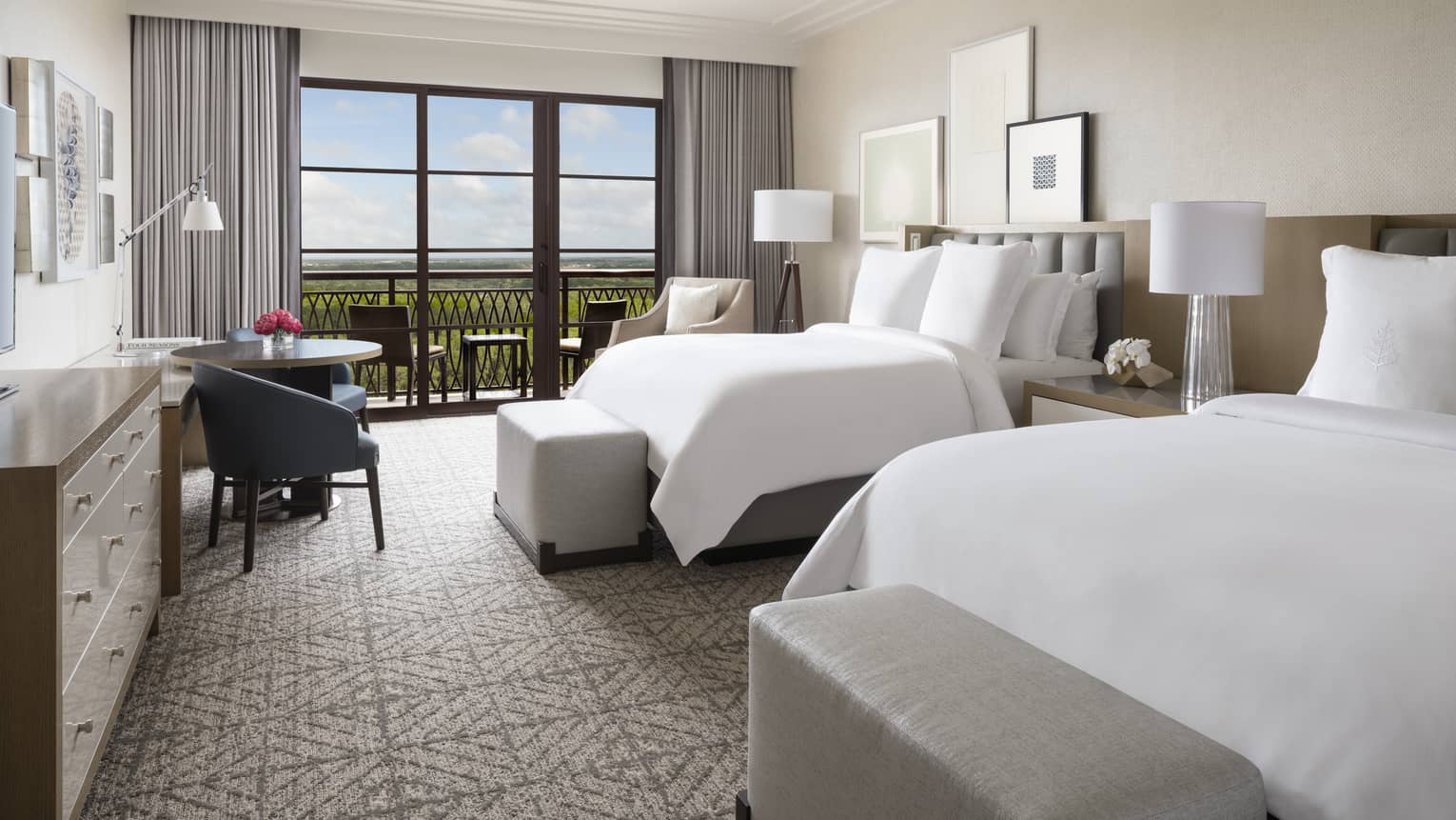 Tome su café matutino mientras mira hacia la exuberante vegetación que rodea al Four Seasons Golf and Sports Club Orlando. Disfrute de la vista de las piscinas del Resort, los lagos y los bosques y del espectáculo de fuegos artificiales de WALT DISNEY WORLD® todas las noches desde la comodidad de su terraza amueblada.