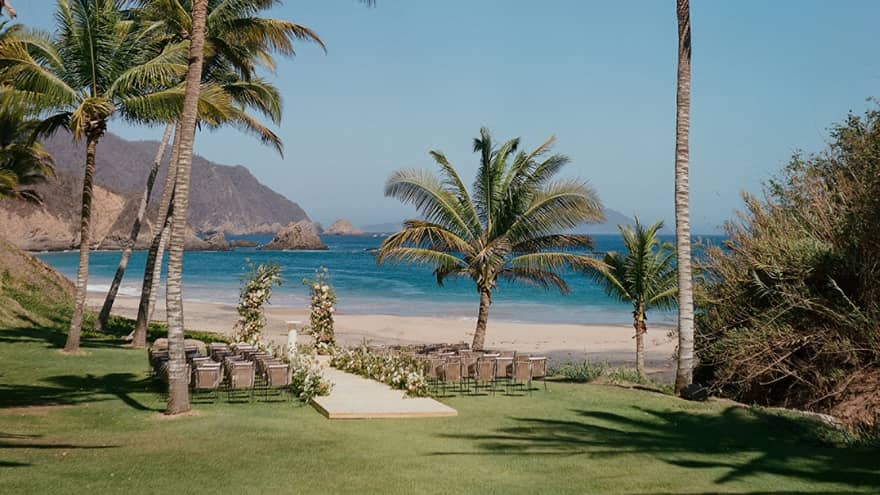 ESPACIOS DE ENSUEÑOLas oportunidades para convertir la boda de sus sueños en realidad son infinitas en nuestra reserva natural privada. El Jardín Melaque ofrece imponentes vistas del océano y una cómoda ubicación junto a nuestro Salón Tenacatita; mientras que Vista le garantiza increíbles vistas de la reserva y el Océano Pacífico, y en Playa Majahua encontrará dramáticos acantilados como telón de fondo.
