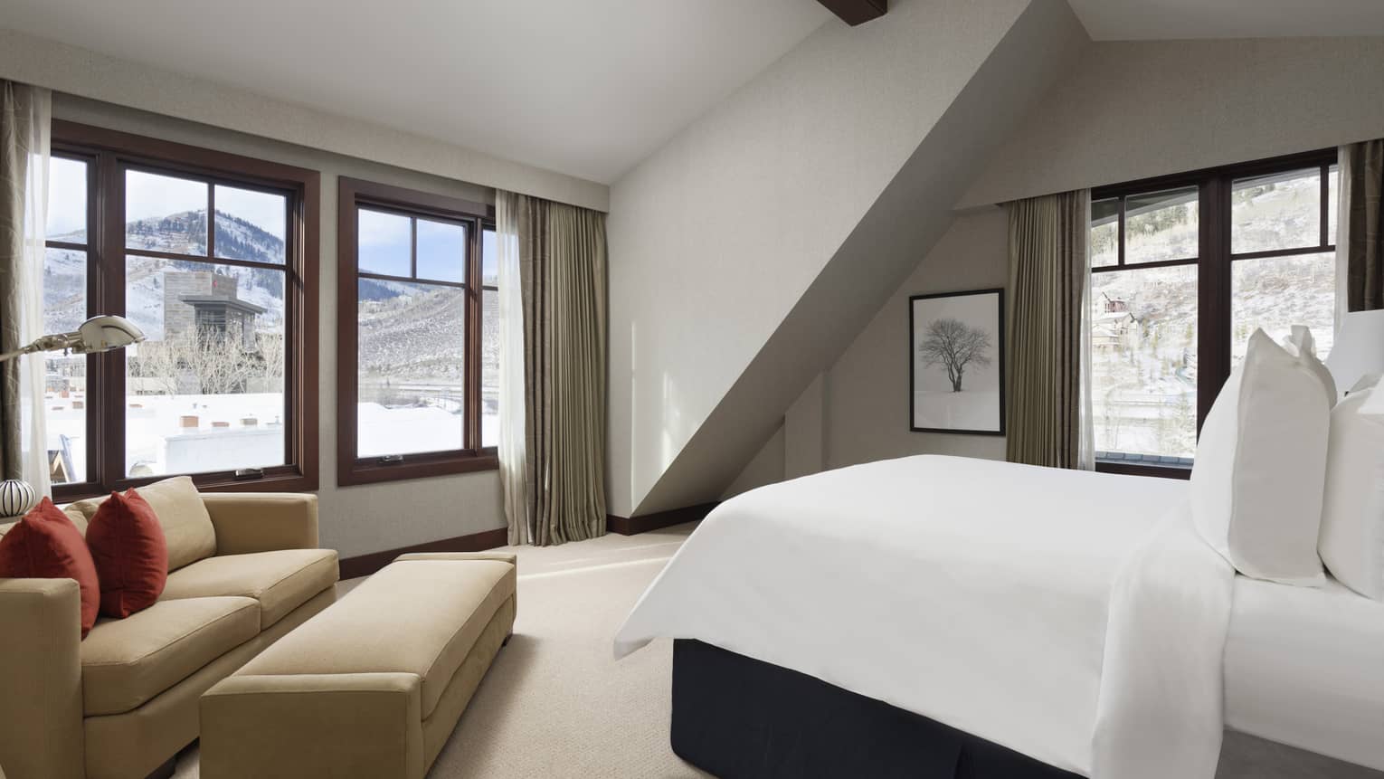 Ideal para familias, grupos de amigos y parejas que buscan una lujosa escapada a la montaña, esta residencia bellamente diseñada con techos abovedados está ubicada en el piso superior de nuestro Resort, y cuenta con un amplio patio y bañera con hidromasaje que ofrece vistas a la Montaña Vail y a Lionshead Village. La cocina de diseño exclusivo se abre al comedor y a la sala de estar, con mucha luz natural procedente de las ventanas orientadas al sur y al oeste. (No se permiten mascotas.)