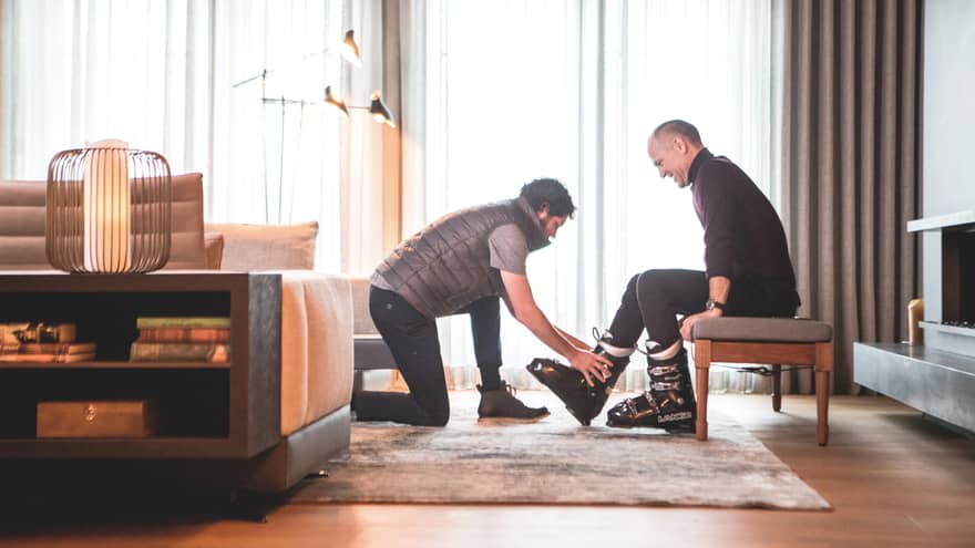 EXPERTOS A SU SERVICIONuestro galardonado equipo de expertos puede encerar y ajustar a diario los esquís y las tablas de snowboard para adaptarlos a las condiciones de la montaña y a las preferencias de nuestros huéspedes.