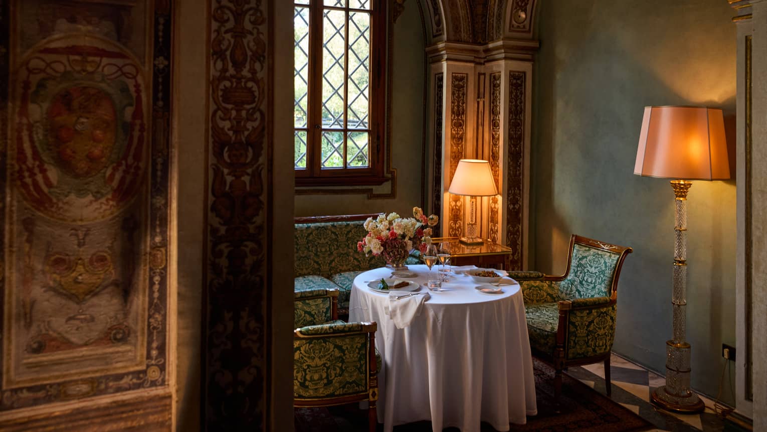 Views of the Giardino del Borgo compete with frescoed vaulted ceilings in our Frescoed Executive Suite