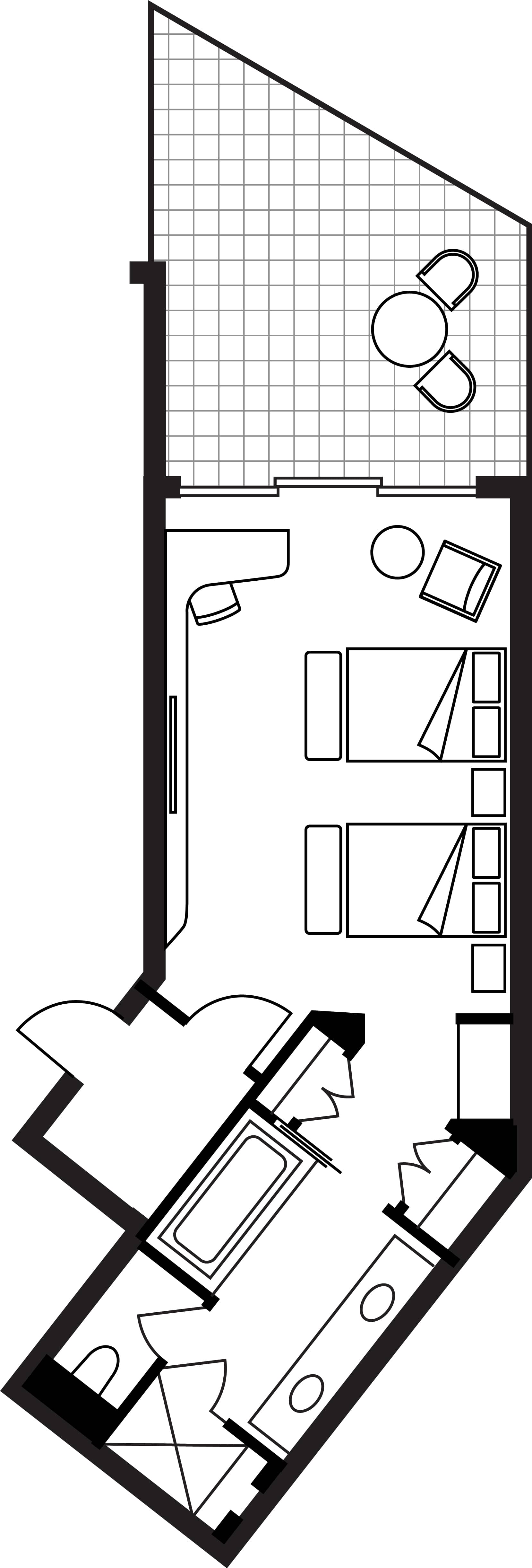 One king bed, two double beds or two queen beds, One rollaway bed (with king-bedded room only) or one crib on request