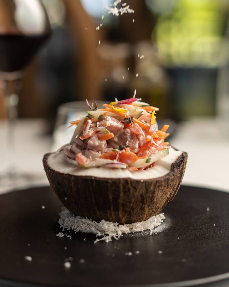 Une œuvre d’art, un mets exquis et un bon moment entre amis. Réunissez vos proches autour de notre poisson cru, un Masterdish élaboré à partir des produits de la mer et de la terre les plus frais, à la carte du Bar et grill de la plage Fare Hoa. Le poisson cru, spécialité la plus célèbre de Polynésie française, s’apprécie à tout moment de la journée.1 / 3