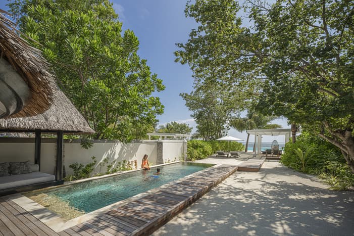 Découvrez un espace ouvert, baigné de lumière, où seul le murmure des vagues vient troubler votre sérénité dans nos nouvelles villas sur la plage. Pénétrez dans un sanctuaire de calme et de clarté, dans lequel de grandes baies vitrées portent le regard vers l'océan. Dans ce havre de raffinement, une piscine privée de 30 mètres carrés prolonge l'horizon et invite à la contemplation.