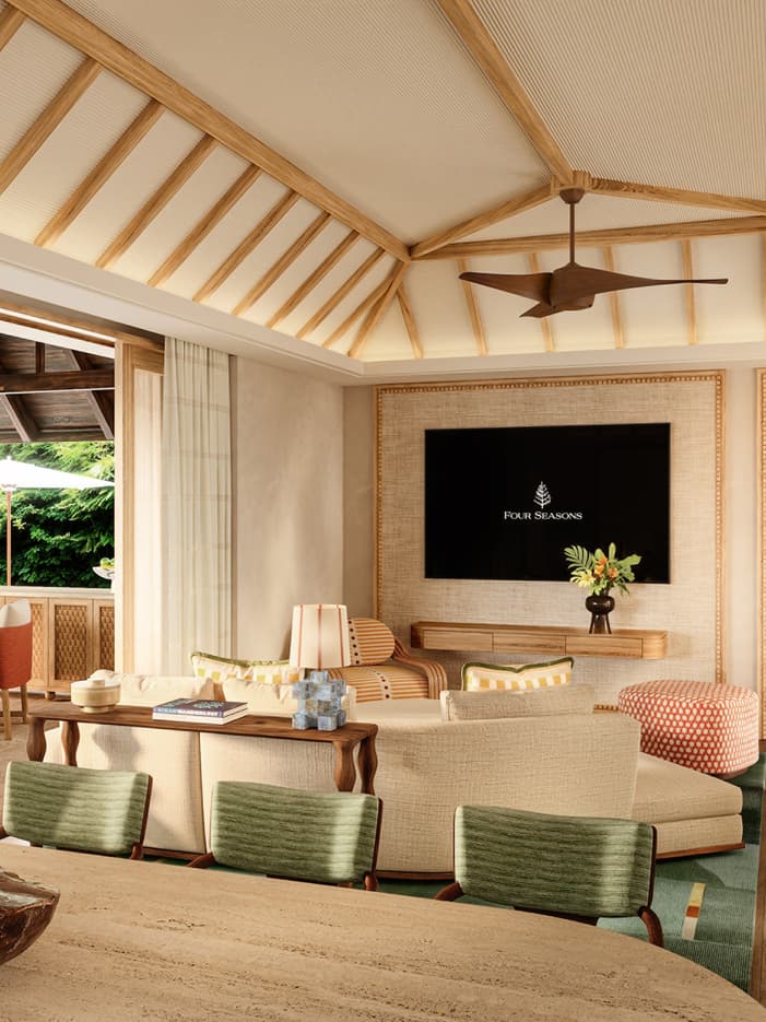 Entouré de jardins tropicaux, ce chez-soi loin de chez soi comprend une cuisine, de grands espaces de vie et une table pour prendre vos repas à l'extérieur. La piscine à débordement et la pelouse sont aussi de parfaits espaces de jeu pour les enfants.