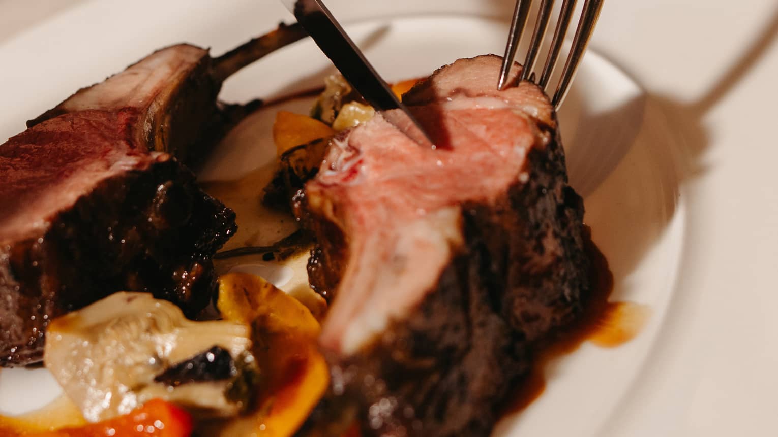 Côtelette d’agneauDouble-Coupe avec Artichauts et Poivrons Rôtis