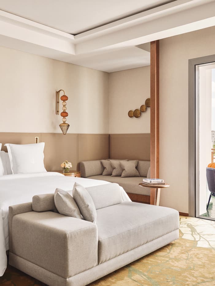 Véritable écrin de sérénité au cœur de la cité de Rabat, cette chambre associe tradition et modernité. Spacieuse, elle s’ouvre sur un balcon ou une terrasse aménagés offrant de magnifiques vues sur la ville ou les espaces de l’hôtel.